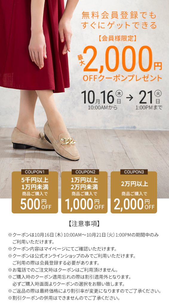 秋の新作にも使える最大2000円OFFクーポンプレゼント!