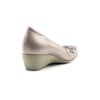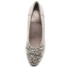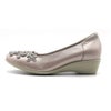 グリッターのフラワーモチーフがポイントになったフェミニンなウェッジパンプス。軽くてクッション性のあるオリジナルソールが快適な履き心地です。履き口に入ったゴムが足へのフィット感をUPさせます。