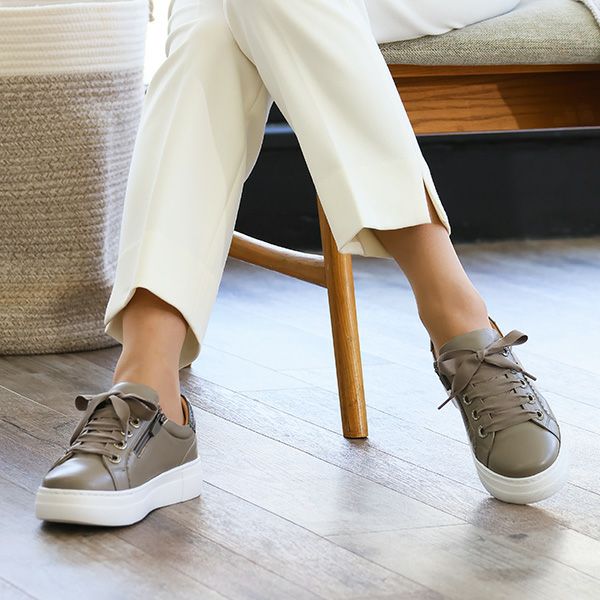 幅広で外反母趾プラス親指が大きく上を向いてるため、靴選びがいつも大変です。今回選んだのは厚底スニーカーでキラキラビジュー付きの紐靴で、もちろんファスナー付き、脚長効果抜群で洋服とのコーディネートも合わせやすい1足です。