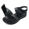足が包まれるように快適なフットベッドタイプのサンダル。甲側のベルトはすべて面ファスナー仕様で足に合わせて調節が出来ます。スニーカー風のアウトソールで程よいカジュアルな仕上がりで合わせやすく使いやすい1足です。