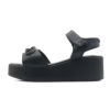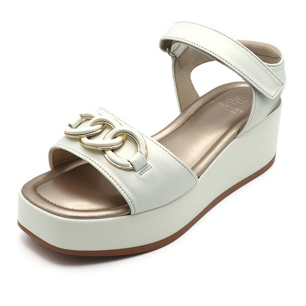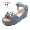 素足でちょうどよく履けます。大きすぎないチェーンが程良いアクセントになっていて、合わせやすいサンダルです。屈曲しにくい厚底タイプですが、面ファスナー仕様の足首ベルトで足をしっかり固定することができるため、歩きにくさはありませんでした。見た目以上に軽く、足元にボリューム感の欲しい方にオススメの一足です。