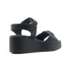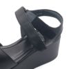 甲が高い足のため、ストラップの面ファスナー貼り面がでてしまいます。歩行に支障はありません。前方にもボリューム感がある厚底のため、傾斜をあまり感じることがない履き心地です。見た目は重そう?とのイメージでしたが履くととても軽いです。