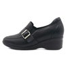 長年ビューウォークで展開していた5cmヒール3Eの木型をビューフォートでリニューアル。サイドゴアとベルト美錠裏にゴムを内蔵し着脱スムーズなスリッポン。ゆったりとした木型で幅も甲部も圧迫感が少ないのに5cmヒールで脚長、スタイルアップして見えるのが嬉しい一足。