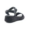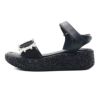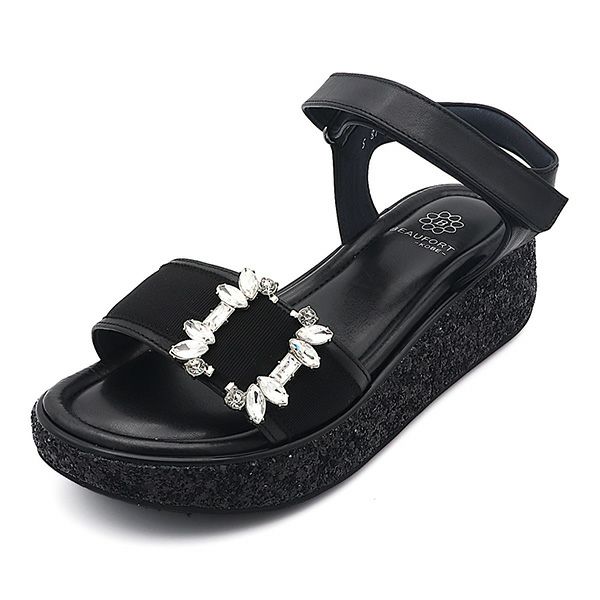 素足にて着用。足長はジャストです。前足部は少し余裕があり、足首ベルトは少し貼り面が出ますが歩行に支障はありません。今までビューフォートに無かったグリッター巻きの厚底ソールが新鮮で、さらに軽量設計なのも嬉しいポイントです。フレアのスカートやパンツに合わせて履きたい1足です。