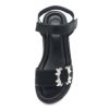 ちょうどよいサイズ感です。甲が高い足なのでストラップ面ファスナーの貼り面は出てしまいますが歩行に支障はありません。ソールのグリッターがキラキラと夏らしくクリアビジューがアクセントとなり足元を華やかにしてくれそうです。