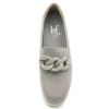 ストッキングにて着用。足囲にゆとりがあります。薄手のソックス着用でちょうど良いサイズ感です。24.5cmだと全体的にきついので、購入する場合は25.0cmを選びます。厚底ソール+カップインソールの仕様なのでとても足裏のクッション性が良く、旅行や立ち仕事の際に活躍してくれそうです。トレンドのチェーンローファーのデザインなのでおしゃれ感も高い1足です。