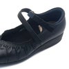 足がきれいに見えるカッティング&優しいプリーツが魅力的なローヒールストラップシューズ。 プリーツデザインがフェミニンな印象を与えてくれます。また、履き口のVカットが足を綺麗に見せる視覚効果も期待できます。微調整可能な面ファスナー仕様のストラップと踵パットで履きやすく足当たりも良いです。