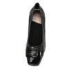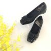 つま先の長さに少しゆとりのある木型なので、足指もぴったりとおさまり、幅感もきつく無く快適に着用できます。購入する場合は24.5cmを選びます。大ぶりのバックルとエナメルのコンビで足元にキチンと感が出るデザインです。