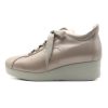 軽量厚底レースアップシューズをエレガントな印象に変えるキラキラビジューアイレットをあしらった厚底シューズ。ヒールはやや高めの4.5cmですが、ソールの厚みが2cmあり傾斜が少なく前足部の負担が少ない設計。フェミニンな装いにもぴったりで、エレガントな印象に履けるウォーキングシューズを探されてる方に是非おすすめです。