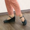 厚底ソールでスタイルアップが期待できるストラップシューズです。シャープなスクエアトウで足をスッキリと見せ、厚底ソールで脚長効果あり。シンプルなデザインが服を選ばず、合わせやすい1足。