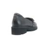 目を惹く大きなビジューと、厚底のタンクソールが特徴のローファー。カカト上クッション入りで足あたりは優しく。