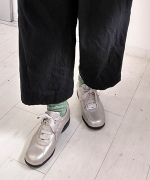 薄手のソックスだと踵が浮いてしまうので少し厚めの物だと丁度良いです。
