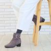 ワンヒール風のオリジナルソールと、インパクト大な金具付きベルトデザインがエレガントな1足。内側ファスナー付きで脱ぎ履きもラクラクです。