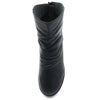 薄手のタイツにて着用。ストレスのない履き心地です。筒回りも指3本ほど入れられる余裕があります。傾斜が少しある木型ですが、甲の高い位置で足が止まるので、前滑りもありませんでした。厚底ソールにカップインソール仕様なので足裏がとても楽!かつ、底冷えからも足を守ってくれる感覚があり、これからの季節活躍しそうです。シンプルなシャーリングデザインでファッションも選ばずいろいとと合わせられそうですね。