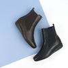 サイドのゴアと内ファスナーで脱ぎ履きがとってもラク。シンプルなデザインで合わせやすく、幅広く活躍できる一足です。撥水レザー使用でお手入れもラクラクです。