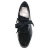 薄手の靴下でぴったり。紐で調節ができるので窮屈感はなく、ストッキングでもちょうどいい余裕をもって問題なく履けます。 ブラックエナメルで試着しましたが、履き始めからとても柔らかくて快適でした。マニッシュな雰囲気とリボン紐の組み合わせが甘辛MIXのようで好みです。