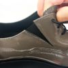 ストッキング着用にてよいサイズ感です。内側にサイドゴムがあるため脱ぎ履きもラクに行えます。柔らかいエナメル革なので足あたりもよくとても履きやすい、またシンプルなデザインはコーディネートと合わせやすく様々シーンで活用できそうです。