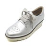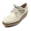 つま先のメダリオンがアクセントになったシンプルなレースアップシューズ。フェミニンなリボン紐とシンプルな丸紐の2種類のひも付きで、その日の気分やコーデで取り換えれます。ファスナー付きで脱ぎ履きもラクラク。ボリューム感の丁度いい厚底と、かかと上のクッションで履き心地も◎