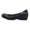 手の込んだ編み込みが印象的な4Eバレエシューズ。傾斜の少ないシューズは踵重心になり、踵への負担がかかりがちですが、ラバーソールで弾力があり、4ポイントクッションインソールのクッション性、厚み、踵部は高反発クッションも使用している為、地面からの衝撃が少なく快適です。