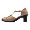 薄手の靴下・ストッキング着用でよいサイズ感です。甲が高い足なので履くときは少しコツが必要ですが履いてしまえば窮屈さはありません。甲部のTストラップ部分に指をいれてぐっと足を前にいれる、それから踵に指をいれて履く、というのが一番スムーズに履けるコツでした。肌の露出の少ないパンプスなのでドレッシーな服装にもぴったりです。