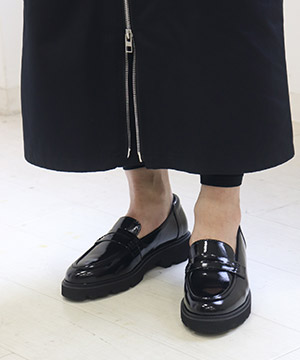 シンプルな正統派ローファーに厚底のタンクソールがアクセントになる1足。シンプルデザインなので合わせやすく使いやすいです。