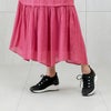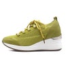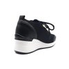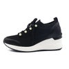 ハイヒールウェッジのきれいめスニーカーを、伸縮性のあるニット素材で仕上げた一足。