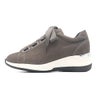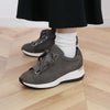 片足約270gと軽量でクッション性のあるスニーカー。太めなリボン紐とビジュー付きハトメのフェミニンデザイン。