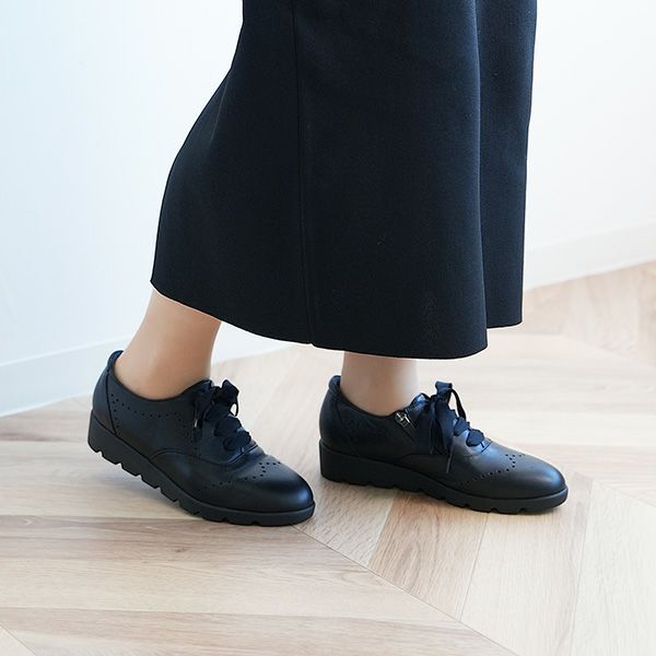 切替を少なく仕上げたシンプルなデザインに、小穴飾りがほどよいアクセント。