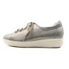 薄手のソックスにて着用。足長にゆとりのある木型の為、ワンサイズ下を薄手のソックスで履いても足囲いにゆとりのある履き心地です。ソールの素材と厚底感、カップインソールで歩行の着地もクッション性を感じ、快適です。