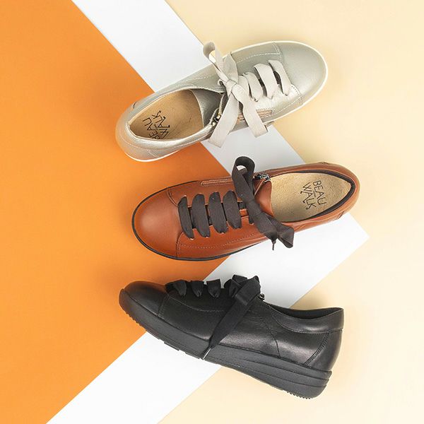 甲部分が大きく開きやすい外羽根デザインをすっきり見せてくれる新作ラウンドトウのスニーカー。ファスナー付きで脱ぎ履きもラクラクです。
