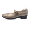 薄手の靴下でちょうどよいサイズ感です。ストラップ下にはゴムが施されているので脱ぎ履きもスムーズです。シンプルなデザインとフロントのVカットがとてもキレイで特につまさき部分がゆったりしているのに見た目はとってもスッキリ。幅広さんには快適なシューズです。