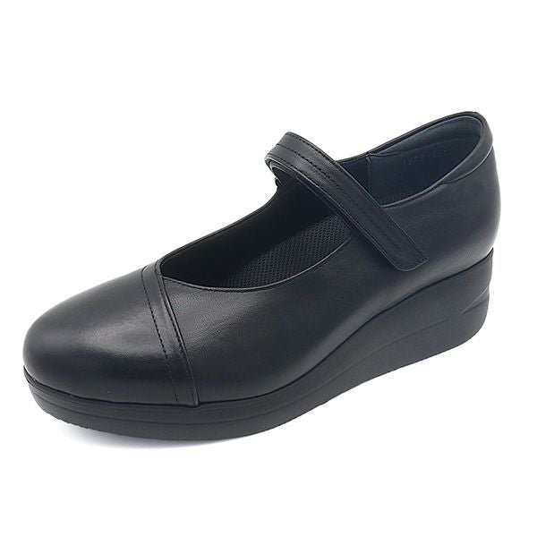 ストッキング着用、薄手の靴下でも問題ありません。私の足は甲が高いのでストラップの貼り面は出てしまいますが歩行に支障はありません。ストラップシリーズの中でも丸みのあるトウシルエットで可愛らしい印象ですがシンプルなデザインなのでコーディネートの幅も広がりそうです。軽量レースアップシューズと同じ木型・ソールなのでスニーカーのような履き心地がストラップシューズでも体感できお仕事にも、沢山歩く日にももってこいのクッション性抜群な履き心地です。