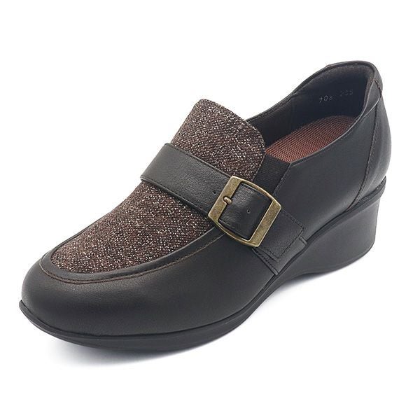 足入れゆったりめのモカスリッポンシューズ。サイドゴア仕様で脱ぎ履きもラクラク。ベルトにもゴムが入っており締め付け感も少なく履き心地も良いです。