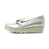 厚めのソールがクッションとなり、一日立ち仕事でも足裏が楽チンです。2、3かい続けて履くと革が馴染むので購入時はピッタリとしたサイズ感がおすすめです。靴まわりのシルバーラインが程よく光るので、周りの方が良く褒めてくださいます。