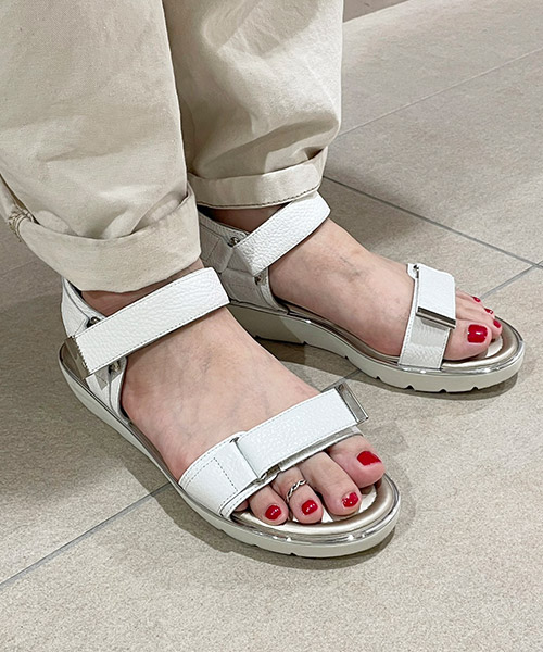 スポーツサンダルをビューフォートらしくレザーでアレンジ。足幅と足首部分共に面ファスナー仕様でラクラク調整できます。