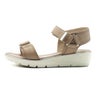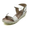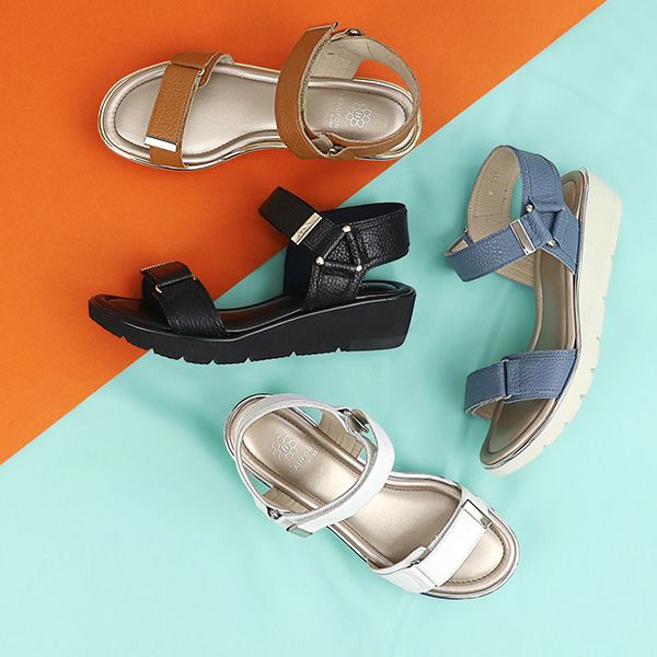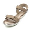 素足にて着用。足長はジャストサイズです。幅感は私の足で前足部、足首共に余裕があったので細めに調節しました。スポーツサンダルのデザインですが、メタルパーツや底周りの形状、程よいヒール感でカジュアルダウンしすぎない雰囲気でフェミニンな服装にも合わせやすそうで嬉しいです。きれいな見た目で幅広&履き心地もよくビューフォートならではの1足になっていると思います。