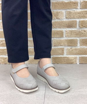 ストッキング着用で余裕をもって履けます。靴下着用も可能です。つま先の編み込んだデザインが個性的で、いつものコーディネートに良いアクセントをつけてくれそうです。