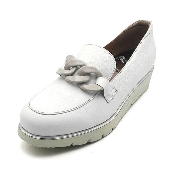 大ぶりなチェーンがインパクトのあるローファーです。自慢のクッションソールにトレンド感の強いデザインで、らくちんにオシャレ上級者に。