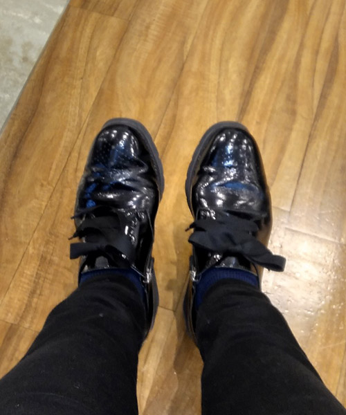 トリプルクッションαで足裏が支えられるような感覚で立ち仕事でも足が疲れにくいです。付属の丸紐に変えると見た目がスッキリするのでキレイめパンツスタイルにもおすすめです。