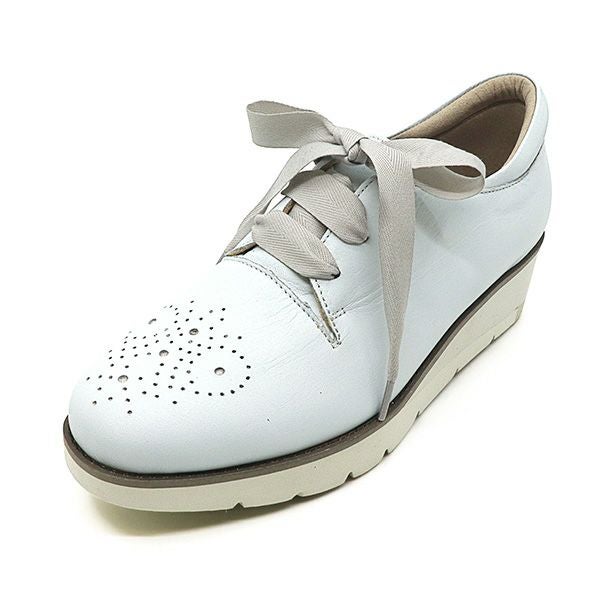 つま先のメダリオンがアクセントになったシンプルなレースアップシューズ。フェミニンなリボン紐とシンプルな丸紐の2種類のひも付きで、その日の気分やコーデで取り換えれます。ファスナー付きで脱ぎ履きもラクラク。ボリューム感の丁度いい厚底と、かかと上のクッションで履き心地も◎