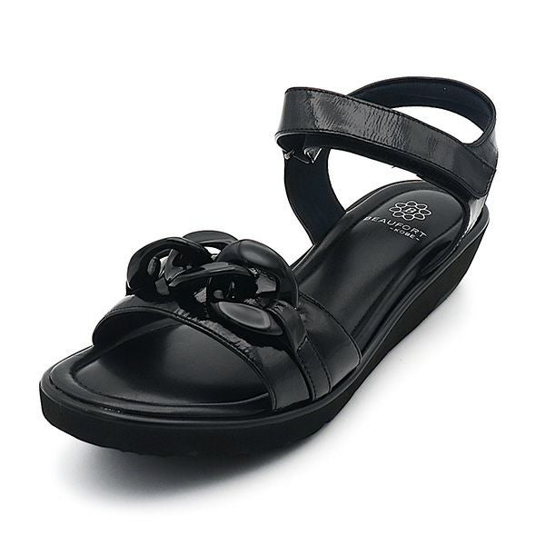 チェーンがアクセント。踵ベルト上部にスポンジがはいっており足当たり柔らかです。