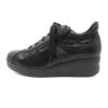 太めのリボン紐がフェミニンな印象を与えてくれます。ミドルカットの履き口と程よい高さの厚底ソールは軽量で足運びも軽やか。また、外側ファスナー仕様でわずらわしい紐外しもなく脱ぎ履きが楽にできます。