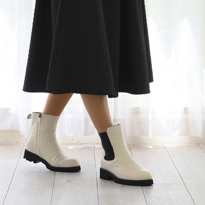 ハーフブーツが欲しかったので色々なメーカーの物を購入しましたが足に馴染まず購入しては返品を繰り返していました、ビューフォートさんは何回か購入し、外反母趾にも響かず楽だったので購入しました。ファスナーがつま先側に少し斜めに入っているので上げ下げも楽でした。履き心地も良いですね。ちょっと大きめに感じましたがタイツ等厚手の物を着用したり、薄手の中敷きを下に入れたりして調整して履こうと思います。良い買物でした。ちょっと大きめだったので−1です。