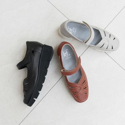 ブラックがサイズが売り切れだった為、茶系とグレーを購入しました。 グレーは春から夏にかけて履けそうで、茶系は意外とどの色の服にもマッチします。ソールの色がベージュなので厚底なのに重い印象にならずに出番が多いです。 気に入ったのでその後ブラックの在庫のあるワンサイズ上を購入しました。靴下を履けばストラップもあるので脱げることはありませんが厚底の重い印象が気になります。 全体的に一年中履けて、活用度高く気に入っています。